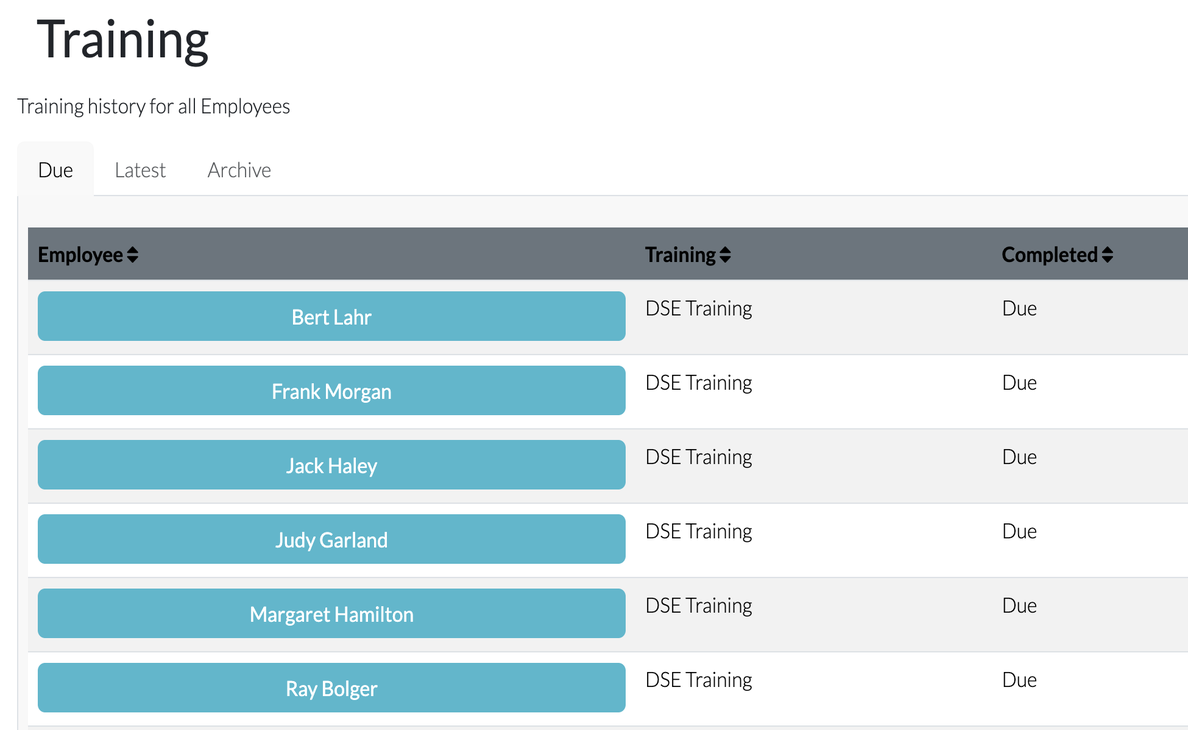 Employees learn about best practice for safe use of DSE equipment, their rights and responsibilities through a self-paced video training with formative assessment questions to ensure that they absorbing the information. You can see who has undertaken the training and when they are due to repeat it, according to the policies you set.
